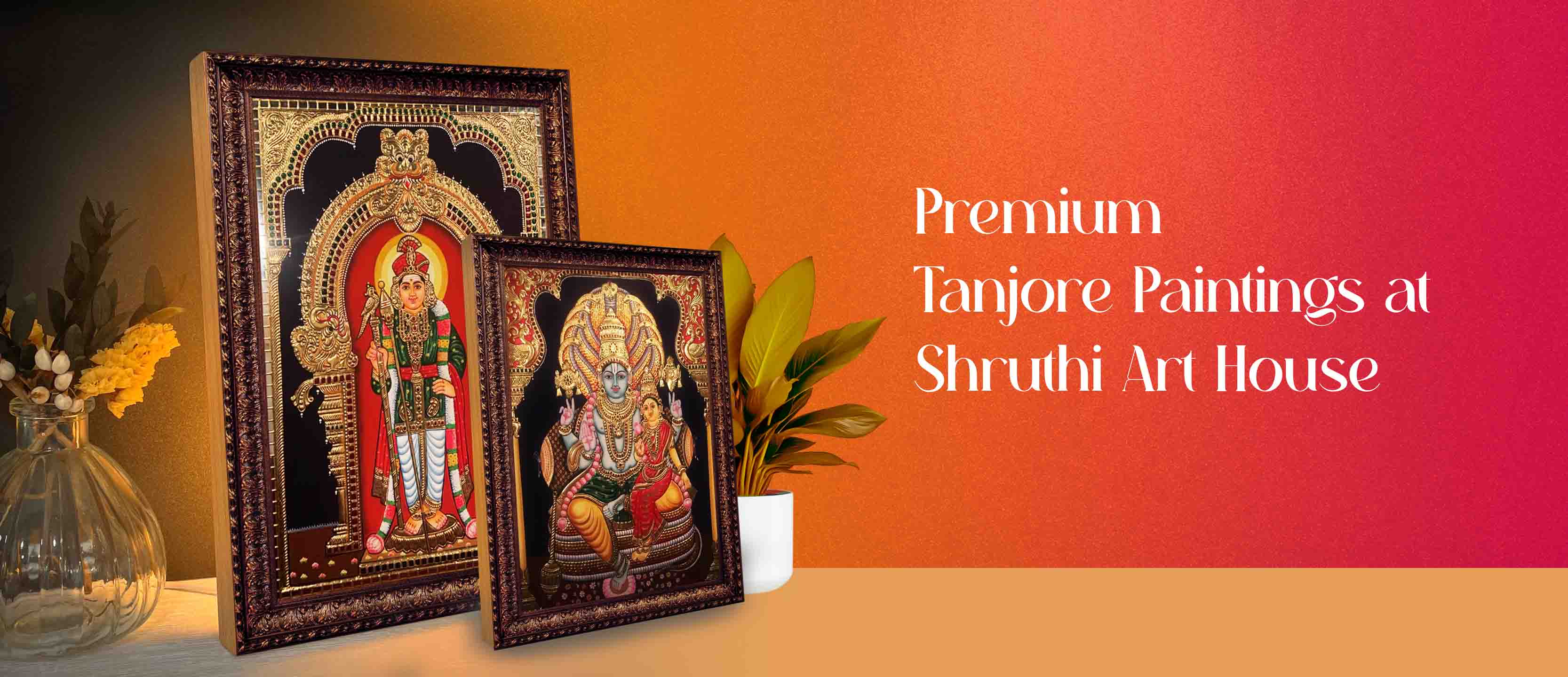 Every artwork created at Shruthi Art House is crafted with passion, precision, and respect for heritage. From Premium Tanjore Paintings to handcrafted Marappachi dolls, our creations reflect authenticity, quality, and timeless beauty. We take pride in offering customized artworks that connect emotionally and spiritually with our customers.