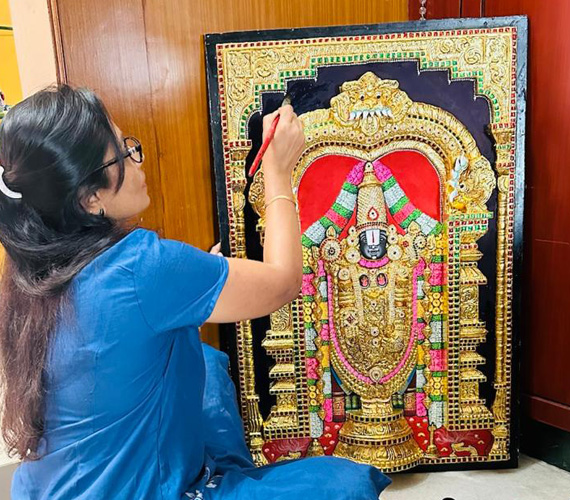 Every artwork created at Shruthi Art House is crafted with passion, precision, and respect for heritage. From Premium Tanjore Paintings to handcrafted Marappachi dolls, our creations reflect authenticity, quality, and timeless beauty. We take pride in offering customized artworks that connect emotionally and spiritually with our customers.