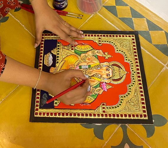 We transform your photos, ideas, and memories into classic Tanjore paintings. At Shruthi Art House, we use traditional techniques with rich gold foil work to create elegant and timeless artworks.